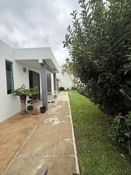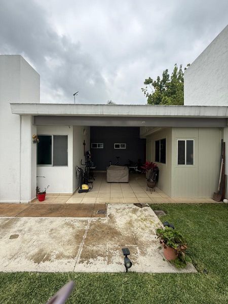 2 Recámaras, principal con vestidor y baño completo, closets y salida al jardin. La segunda recámara con closet y baño completo para compartir con la visita. Sala, comedor y area de t.v. Cocina equipada y lavandería. Amplio jardín y terraza techada. Un baño externo y un área de almacén y oficina.