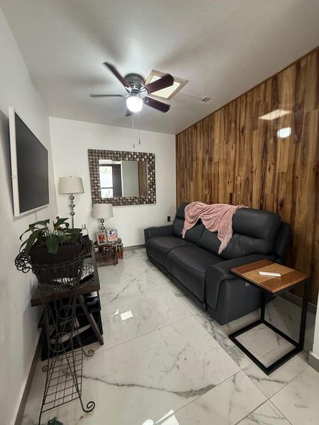 A/A en sala, y las 2 recámaras, así como ventiladores de techo.