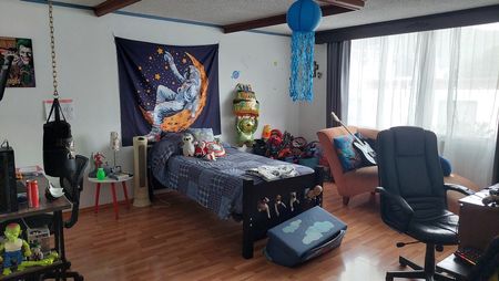 La recámara principal cuenta con Terraza y 2 clóset de blancos, todo el piso Laminado, techos altos, en excelente estado de conservación, toda la casa cuenta con protecciones en puertas y ventanas, puertas de madera.